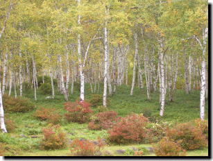 白樺の群生を楽しむというよりは 川の苔に感動しました。