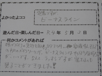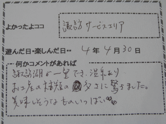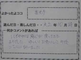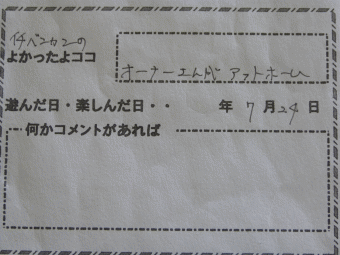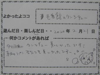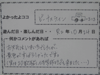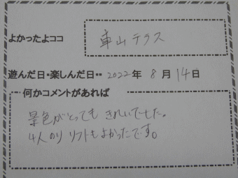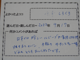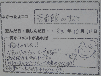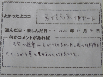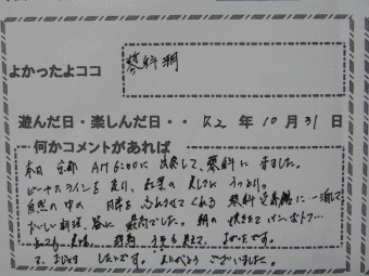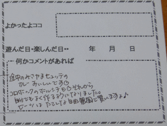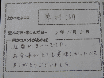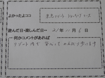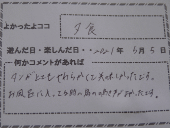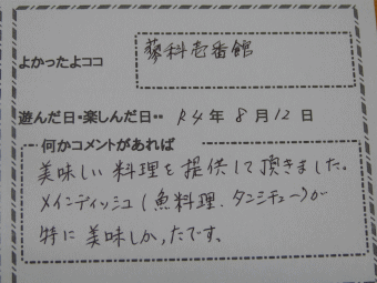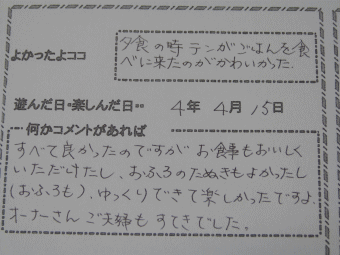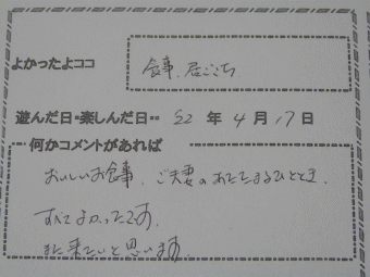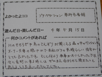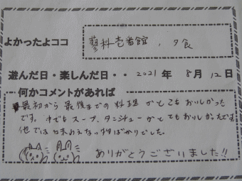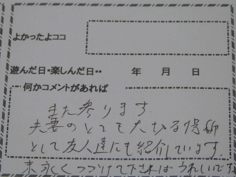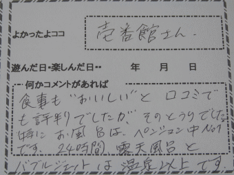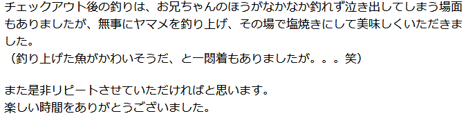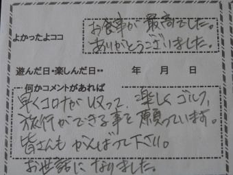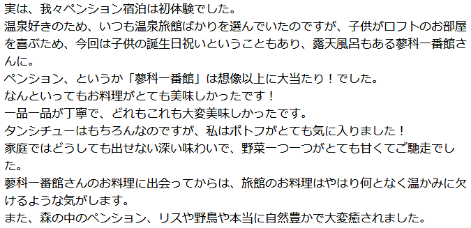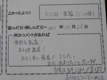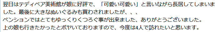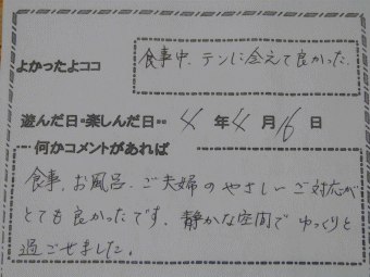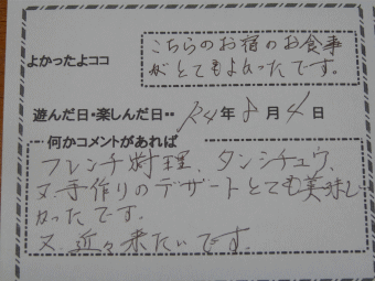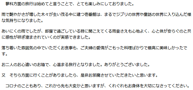 | 先日宿泊させて頂いた○○です。楽しい時間を有難うございました。 |