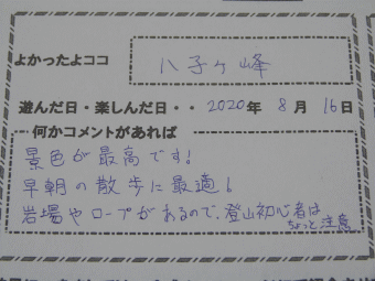 | 八子ケ峰(東急トレッキングコース)のご紹介 |