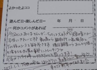 ご家族皆様での貴重なお時間を、当館でお過ごし頂き 本当にありがとうございました。 |