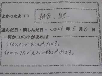 また お褒めの言葉の数々 本当に感謝申し上げます りす君もタイミング良く 朝食の時間に来てくれて良かったです(^▽^)/