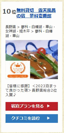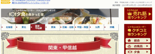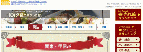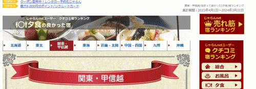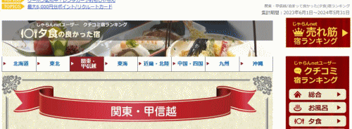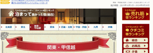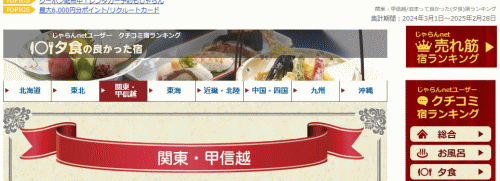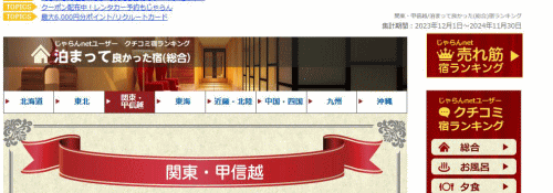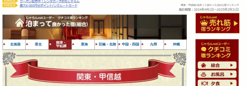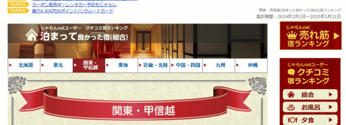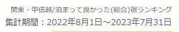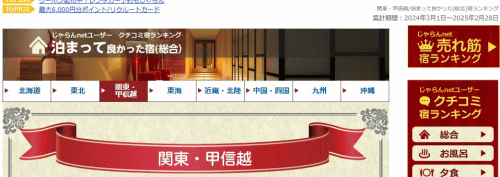じゃらんnetユーザー口コミ宿ランキング 泊まって良かった宿 [関東・甲信越] で