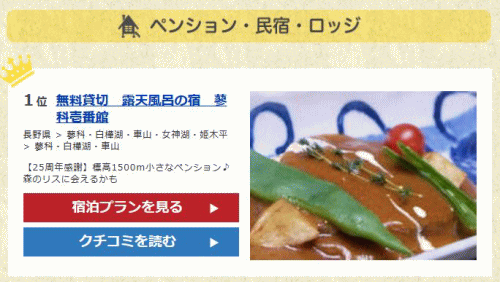 <泊まって良かった宿 関東・甲信越> ペンション・民宿・ロッジ (夕食1位)入賞