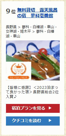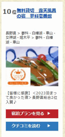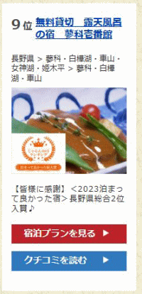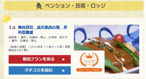 今年2024年 じゃらんnetさんより突然の「入賞」のお知らせがありました。