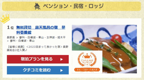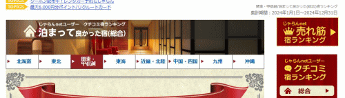 じゃらんnetユーザー クチコミ宿ランキング【年間】